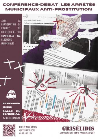 Nous invitons les candidat·es aux élections municipales 2026 à nous rencontrer sur la question des arrêtés anti‑prostitution. Dans ce but, l’association Grisélidis convie les candidat.es lors de deux événements :